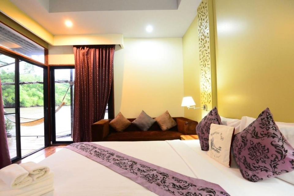 with 2 queen size beds, private swimming pool in the river, large bathroom and pantry, flat TV and satellite