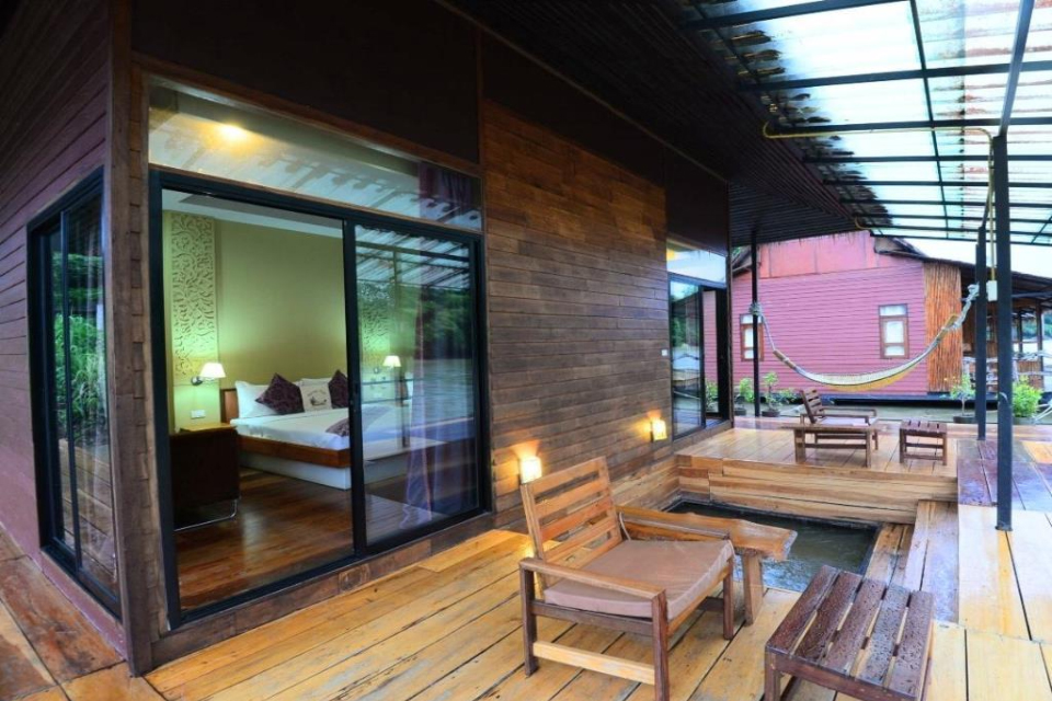 with 2 queen size beds, private swimming pool in the river, large bathroom and pantry, flat TV and satellite